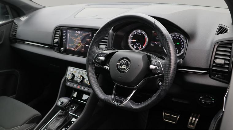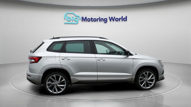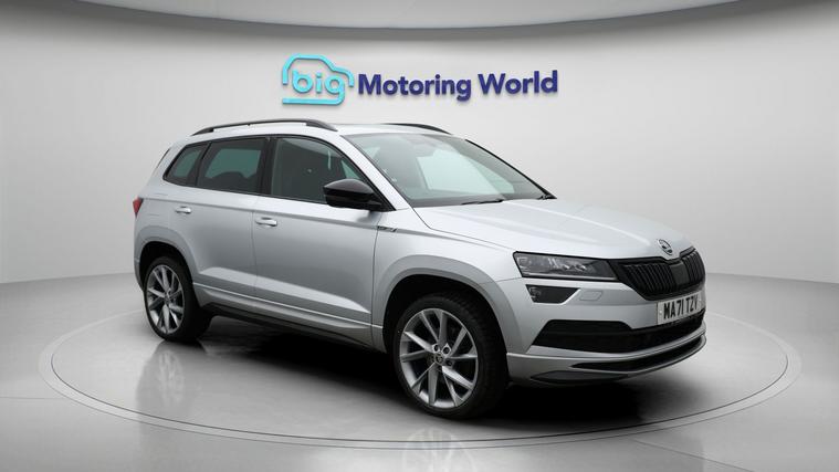 Our Skoda Karoq is finished in Silver. Specification includes a range of fantastic features including Panoramic Roof, 19'' Alloy wheels, Apple CarPlay, Adaptive Cruise Control, Cooled Glovebox, Android Auto, Privacy Glass, Rear View Camera, Bluetooth, Parking Sensors Specification information is supplied by CAPHPI and may vary to the actual car. This data does not form any part of a buying contact. Please check specification prior to purchase in-store. The MOT is valid until September 2026, visit dealer's website for more photos, a 360 tour, service history and a free HPI report.