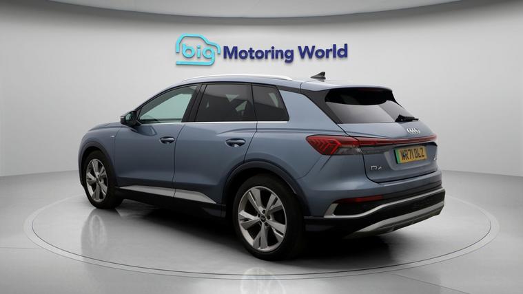 Our Audi Q4 e-tron is finished in Blue. Specification includes a range of fantastic features including Apple CarPlay, Android Auto, Satellite Navigation, Privacy Glass, Heated Seats, Virtual Cockpit, Rear View Camera, Bluetooth, Audi Connect, 2 Zone Climate Specification information is supplied by CAPHPI and may vary to the actual car. This data  does not form any part of a buying contact. Please check specification prior to purchase in-store. The MOT is valid until October 2026, visit dealer's website for more photos, a 360 tour, service history and a free HPI report.