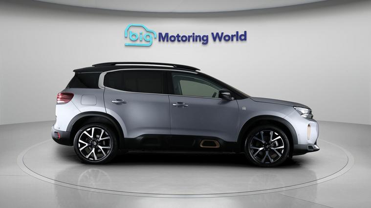 Our Citroen C5 Aircross is finished in Grey. Specification includes a range of fantastic features including Panoramic Roof, Leather Seats, Apple CarPlay, Adaptive Cruise Control, Android Auto, Satellite Navigation, Privacy Glass, Rear View Camera, Bluetooth, Blind Spot Assist Specification information is supplied by CAPHPI and may vary to the actual car. This data does not form any part of a buying contact. Please check specification prior to purchase in-store. The MOT is valid until March 2026, visit dealer's website for more photos, a 360 tour, service history and a free HPI report.