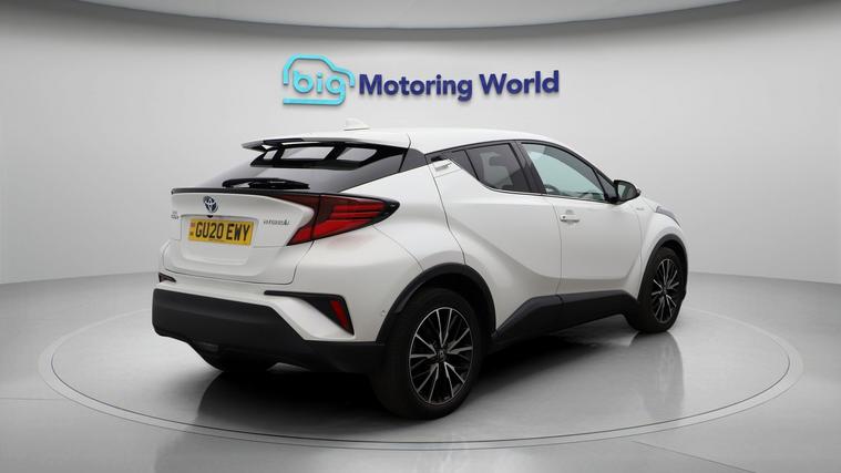 Our Toyota C-HR is finished in White. Specification includes a range of fantastic features including Adaptive Cruise Control, Privacy Glass, Rear View Camera, Heated Steering Wheel, Bluetooth, Parking Sensors, Adaptive LED Headlights, Ambient Lighting, Wi-Fi Hot Spot Prep, 2 Zone Climate Specification information is supplied by CAPHPI and may vary to the actual car. This data does not form any part of a buying contact. Please check specification prior to purchase in-store. The MOT is valid until October 2026, visit dealer's website for more photos, a 360 tour, service history and a free HPI report.