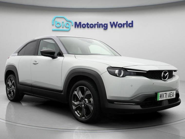 Our Mazda MX-30 is finished in White. Specification includes a range of fantastic features including Head up Display, 18'' alloy wheels, Part Leather Seats, Adaptive Cruise Control, Privacy Glass, Heated Seats, Rear View Camera, Bluetooth, Blind Spot Assist, Parking Sensors Specification information is supplied by CAPHPI and may vary to the actual car. This data does not form any part of a buying contact. Please check specification prior to purchase in-store. The MOT is valid until November 2026, visit dealer's website for more photos, a 360 tour, service history and a free HPI report.