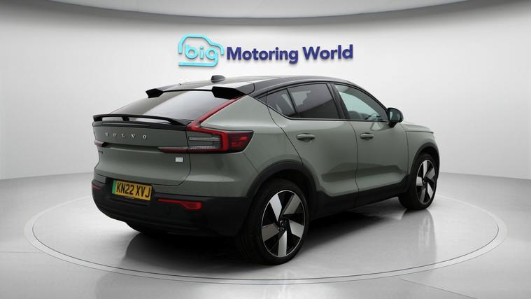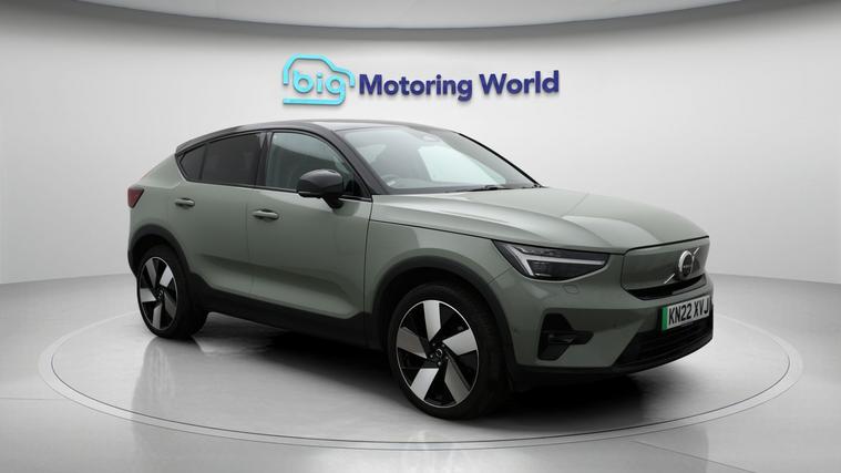 Our Volvo C40 is finished in Green. Specification includes a range of fantastic features including Panoramic Roof, 20'' Alloy Wheels, Part Leather Seats, Adaptive Cruise Control, Electric Seats, Harman Kardon Speakers, Premium Sound System, Satellite Navigation, Privacy Glass, Heated Seats Specification information is supplied by CAPHPI and may vary to the actual car. This data does not form any part of a buying contact. Please check specification prior to purchase in-store. The MOT is valid until October 2026, visit dealer's website for more photos, a 360 tour, service history and a free HPI report.