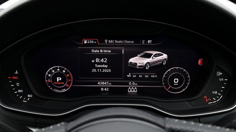 Our Audi A5 comes with optional extras worth £2, 070. Specification includes a range of fantastic features including BMW Tech Pack, Part Leather Seats, Leather Seats, S Line Body Styling, Internet, Bluetooth, Parking Sensors, Audi Parking System, Audi Connect, Ambient Lighting Specification information is supplied by CAPHPI and may vary to the actual car. This data does not form any part of a buying contact. Please check specification prior to purchase in-store. The MOT is valid until July 2026, visit dealer's website for more photos, a 360 tour, service history and a free HPI report.