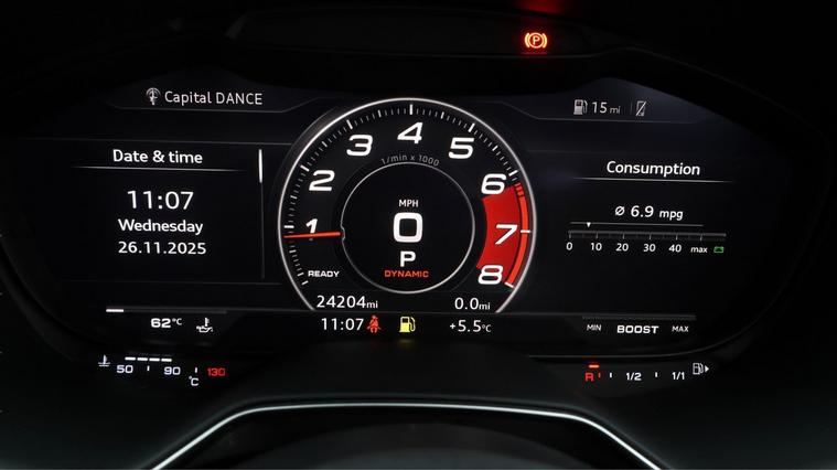 Our Audi TT is finished in Black. Specification includes a range of fantastic features including 20'' Alloy Wheels, Part Leather Seats, S Line Body Styling, Satellite Navigation, Privacy Glass, Heated Seats, Bluetooth, Parking Sensors, Audi Connect, Touch Pad Specification information is supplied by CAPHPI and may vary to the actual car. This data does not form any part of a buying contact. Please check specification prior to purchase in-store. The MOT is valid until November 2026, visit dealer's website for more photos, a 360 tour, service history and a free HPI report.