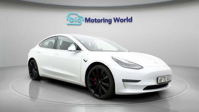 Our Tesla Model 3 is finished in White. Specification includes a range of fantastic features including FREE £750 towards your finance Deposit, All Wheel Drive, 20'' Alloy Wheels, Leather Seats, Adaptive Cruise Control, Satellite Navigation, Heated Seats, Wireless Phone Charging, Rear View Camera, Heated Rear Seats Specification information is supplied by CAPHPI and may vary to the actual car. This data does not form any part of a buying contact. Please check specification prior to purchase in-store. The MOT is valid until November 2026, visit dealer's website for more photos, a 360 tour, service history and a free HPI report.