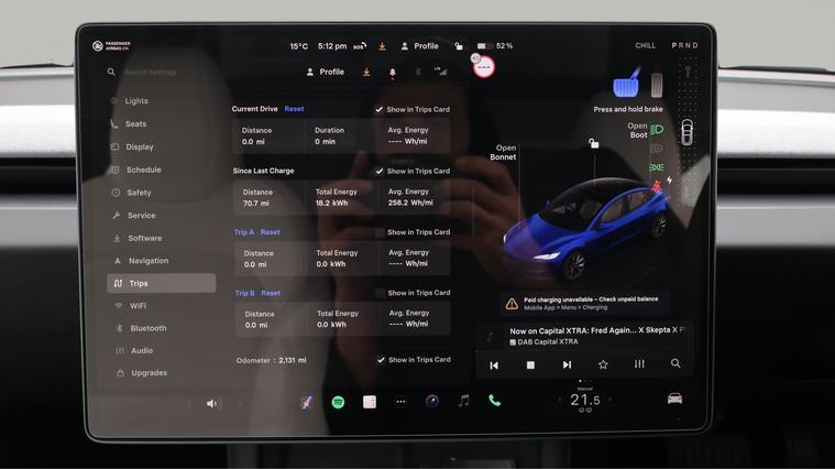 Our Tesla Model 3 is finished in Blue. Specification includes a range of fantastic features including FREE £750 towards your finance Deposit, Panoramic Roof, Leather Seats, Lane Assist, Satellite Navigation, Privacy Glass, Heated Seats, Rear View Camera, Heated Rear Seats, Heated Steering Wheel Specification information is supplied by CAPHPI and may vary to the actual car. This data does not form any part of a buying contact. Please check specification prior to purchase in-store. The MOT is valid until March 2028, visit dealer's website for more photos, a 360 tour, service history and a free HPI report.