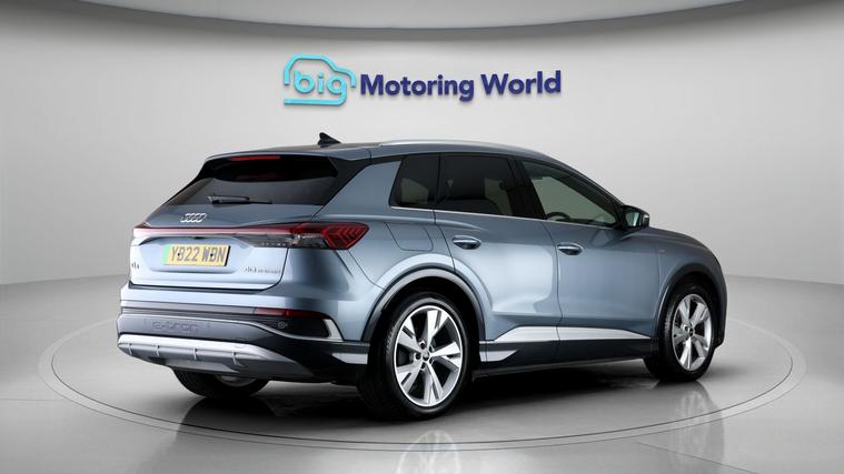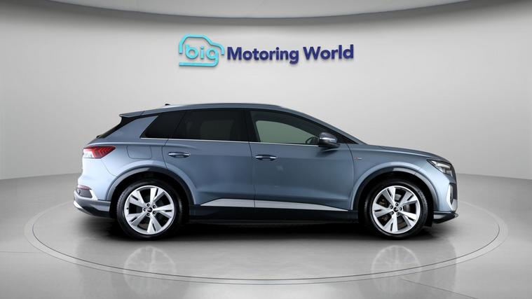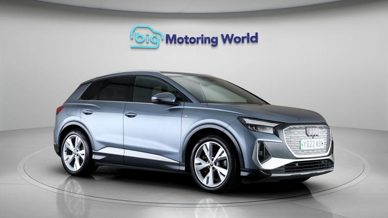 Our Audi Q4 e-tron is finished in Blue. Specification includes a range of fantastic features including FREE £750 towards your finance Deposit, Lane Assist, Satellite Navigation, Privacy Glass, Heated Seats, Bluetooth, Audi Connect, 2 Zone Climate, Cruise Control, Sports Seats Specification information is supplied by CAPHPI and may vary to the actual car. This data does not form any part of a buying contact. Please check specification prior to purchase in-store. The MOT is valid until August 2026, visit dealer's website for more photos, a 360 tour, service history and a free HPI report.
