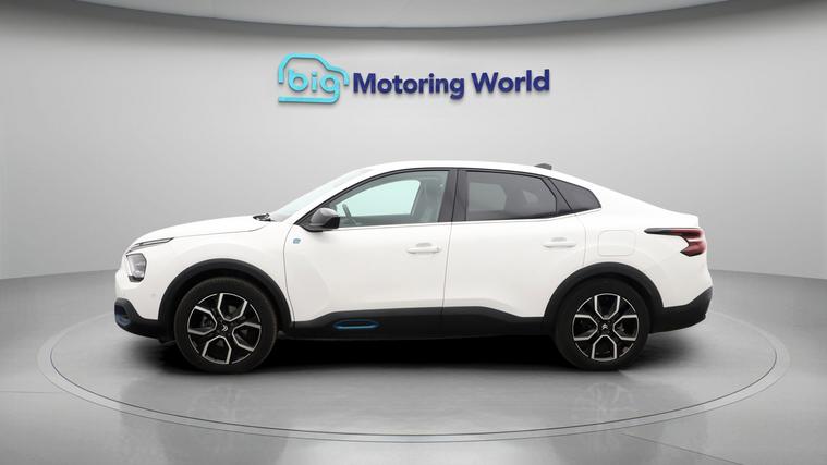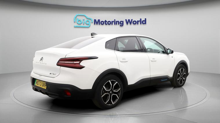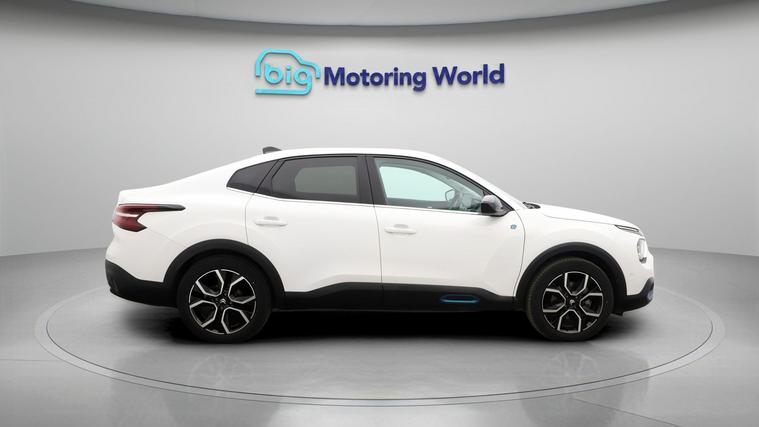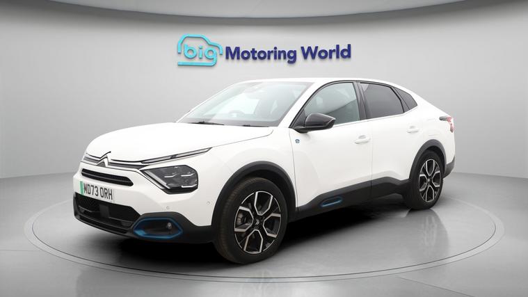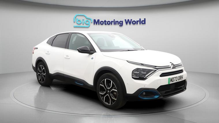 Our Citroen e-C4 X is finished in White. Specification includes a range of fantastic features including FREE £750 towards your finance Deposit, Head up Display, 18'' alloy wheels, Rear View Camera, Heated Steering Wheel, Bluetooth, Blind Spot Assist, Parking Sensors, Ambient Lighting, 2 Zone Climate Specification information is supplied by CAPHPI and may vary to the actual car. This data does not form any part of a buying contact. Please check specification prior to purchase in-store. The MOT is valid until November 2026, visit dealer's website for more photos, a 360 tour, service history and a free HPI report.
