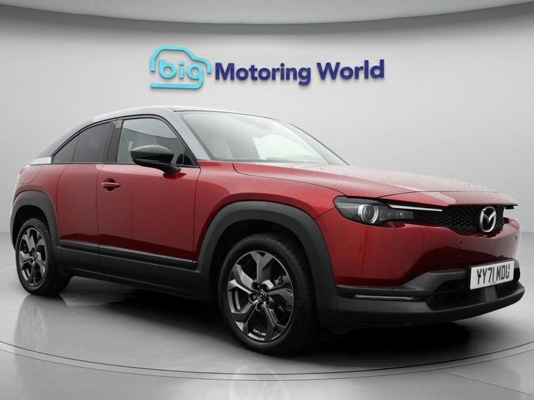 Our Mazda MX-30 is finished in Red. Specification includes a range of fantastic features including Head up Display, 18'' alloy wheels, Adaptive Cruise Control, Privacy Glass, Heated Seats, Rear View Camera, Heated Steering Wheel, Bluetooth, Blind Spot Assist, Bose Specification information is supplied by CAPHPI and may vary to the actual car. This data does not form any part of a buying contact. Please check specification prior to purchase in-store. The MOT is valid until October 2026, visit dealer's website for more photos, a 360 tour, service history and a free HPI report.