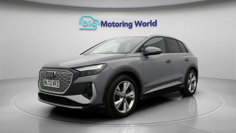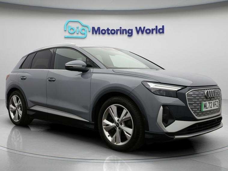 Our Audi Q4 e-tron is finished in Grey. Specification includes a range of fantastic features including FREE £750 towards your finance Deposit, Part Leather Seats, Apple CarPlay, Lane Assist, S Line Body Styling, Android Auto, Satellite Navigation, Privacy Glass, Heated Seats, Rear View Camera Specification information is supplied by CAPHPI and may vary to the actual car. This data does not form any part of a buying contact. Please check specification prior to purchase in-store. The MOT is valid until September 2026, visit dealer's website for more photos, a 360 tour, service history and a free HPI report.
