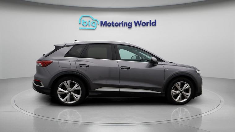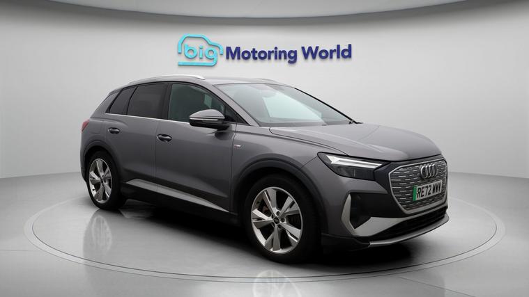 Our Audi Q4 e-tron is finished in Grey. Specification includes a range of fantastic features including £500 towards your finance deposit, Part Leather Seats, Apple CarPlay, Lane Assist, S Line Body Styling, Android Auto, Satellite Navigation, Privacy Glass, Heated Seats, Rear View Camera Specification information is supplied by CAPHPI and may vary to the actual car. This data does not form any part of a buying contact. Please check specification prior to purchase in-store. The MOT is valid until October 2026, visit dealer's website for more photos, a 360 tour, service history and a free HPI report.