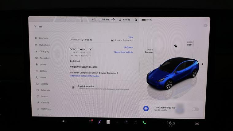 Our Tesla Model Y is finished in Blue. Specification includes a range of fantastic features including FREE £750 towards your finance Deposit, All Wheel Drive, Heated Seats, Wireless Phone Charging, Rear View Camera, Heated Rear Seats, Heated Steering Wheel, Bluetooth, Blind Spot Assist, Ambient Lighting Specification information is supplied by CAPHPI and may vary to the actual car. This data does not form any part of a buying contact. Please check specification prior to purchase in-store. The MOT is valid until September 2026, visit dealer's website for more photos, a 360 tour, service history and a free HPI report.