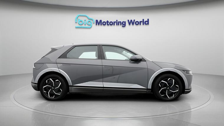 Our Hyundai IONIQ 5 is finished in Grey. Specification includes a range of fantastic features including 19'' Alloy wheels, Part Leather Seats, Leather Seats, Heated Seats, Wireless Phone Charging, Heated Steering Wheel, Bluetooth, Blind Spot Assist, Parking Sensors, Real Time Traffic Info Specification information is supplied by CAPHPI and may vary to the actual car. This data does not form any part of a buying contact. Please check specification prior to purchase in-store. The MOT is valid until October 2026, visit dealer's website for more photos, a 360 tour, service history and a free HPI report.