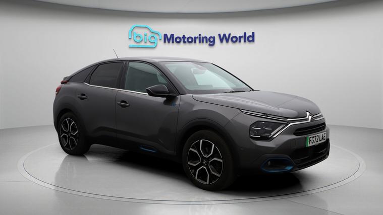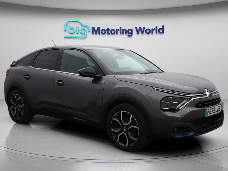 Our Citroen e-C4 is finished in Grey. Specification includes a range of fantastic features including £750 towards your finance deposit, Head up Display, 18'' alloy wheels, Leather Seats, Satellite Navigation, Privacy Glass, Heated Seats, Rear View Camera, Heated Steering Wheel, Bluetooth Specification information is supplied by CAPHPI and may vary to the actual car. This data does not form any part of a buying contact. Please check specification prior to purchase in-store. The MOT is valid until September 2026, visit dealer's website for more photos, a 360 tour, service history and a free HPI report.