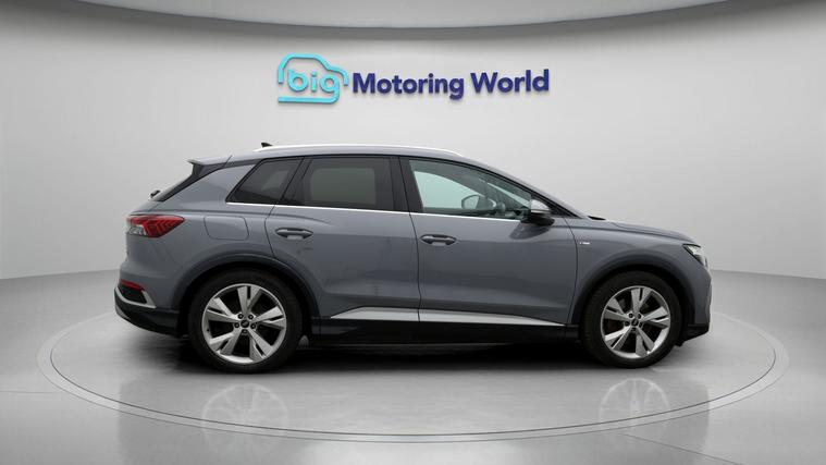 Our Audi Q4 e-tron is finished in Grey. Specification includes a range of fantastic features including £750 towards your finance deposit, All Wheel Drive, Part Leather Seats, Lane Assist, S Line Body Styling, Satellite Navigation, Privacy Glass, Heated Seats, Bluetooth, Audi Connect Specification information is supplied by CAPHPI and may vary to the actual car. This data does not form any part of a buying contact. Please check specification prior to purchase in-store. The MOT is valid until December 2026, visit dealer's website for more photos, a 360 tour, service history and a free HPI report.