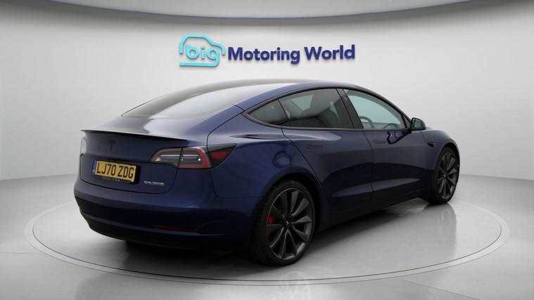 Our Tesla Model 3 is finished in Blue. Specification includes a range of fantastic features including £750 towards your finance deposit, All Wheel Drive, 20'' Alloy Wheels, Adaptive Cruise Control, Heated Seats, Wireless Phone Charging, Rear View Camera, Heated Rear Seats, Heated Steering Wheel, Bluetooth Specification information is supplied by CAPHPI and may vary to the actual car. This data does not form any part of a buying contact. Please check specification prior to purchase in-store. The MOT is valid until July 2026, visit dealer's website for more photos, a 360 tour, service history and a free HPI report.