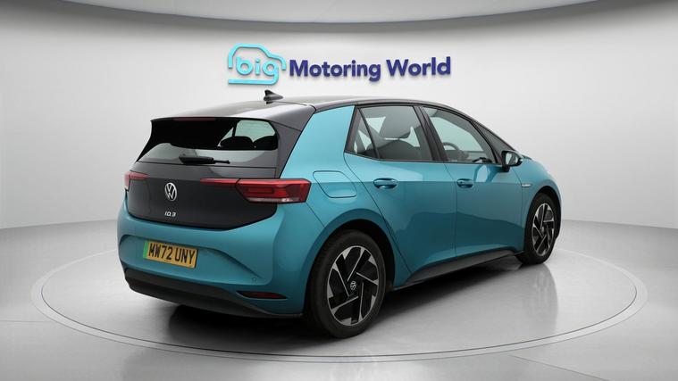 Our Volkswagen ID.3 is finished in Turquoise. Specification includes a range of fantastic features including Adaptive Cruise Control, Lane Assist, TV, Bluetooth, Blind Spot Assist, Parking Sensors, Cruise Control, Keyless Go, Voice Control, DAB Radio Specification information is supplied by CAPHPI and may vary to the actual car. This data does not form any part of a buying contact. Please check specification prior to purchase in-store. The MOT is valid until November 2026, visit dealer's website for more photos, a 360 tour, service history and a free HPI report.