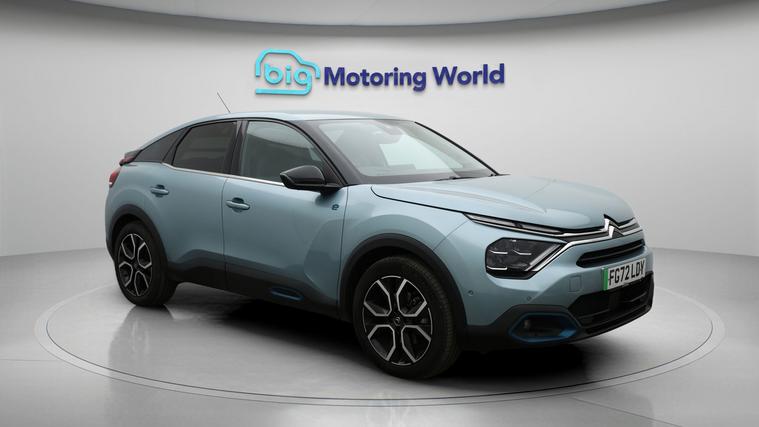 Our Citroen e-C4 is finished in Blue. Specification includes a range of fantastic features including £750 towards your finance deposit, Head up Display, 18'' alloy wheels, Heated Seats, Rear View Camera, Heated Steering Wheel, Bluetooth, Blind Spot Assist, Parking Sensors, Ambient Lighting Specification information is supplied by CAPHPI and may vary to the actual car. This data does not form any part of a buying contact. Please check specification prior to purchase in-store. The MOT is valid until September 2026, visit dealer's website for more photos, a 360 tour, service history and a free HPI report.