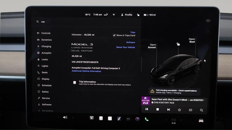 Our Tesla Model 3 is finished in Black. Specification includes a range of fantastic features including £750 towards your finance deposit, All Wheel Drive, Leather Seats, Adaptive Cruise Control, Satellite Navigation, Heated Seats, Wireless Phone Charging, Rear View Camera, Heated Rear Seats, Heated Steering Wheel Specification information is supplied by CAPHPI and may vary to the actual car. This data does not form any part of a buying contact. Please check specification prior to purchase in-store. The MOT is valid until December 2026, visit dealer's website for more photos, a 360 tour, service history and a free HPI report.