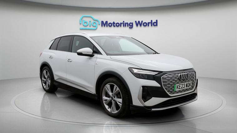 Our Audi Q4 e-tron is finished in White. Specification includes a range of fantastic features including £750 towards your finance deposit, Part Leather Seats, Apple CarPlay, Lane Assist, S Line Body Styling, Android Auto, Satellite Navigation, Privacy Glass, Heated Seats, Rear View Camera Specification information is supplied by CAPHPI and may vary to the actual car. This data does not form any part of a buying contact. Please check specification prior to purchase in-store. The MOT is valid until August 2026, visit dealer's website for more photos, a 360 tour, service history and a free HPI report.