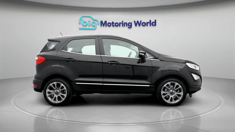 Our Ford EcoSport comes with optional extras worth £500. Specification includes a range of fantastic features including 17'' Alloy Wheels, Part Leather Seats, Cooled Glovebox, Ford SYNC, Rear View Camera, Internet, Bluetooth, Parking Sensors, Ambient Lighting, Cruise Control Specification information is supplied by CAPHPI and may vary to the actual car. This data does not form any part of a buying contact. Please check specification prior to purchase in-store. The MOT is valid until November 2026, visit dealer's website for more photos, a 360 tour, service history and a free HPI report.