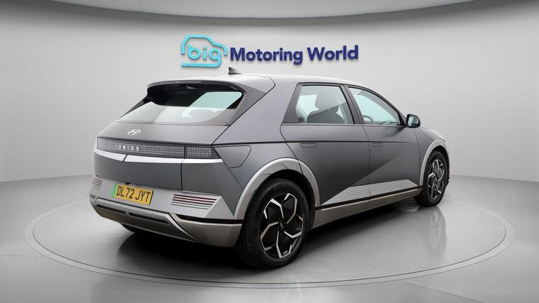 Our Hyundai IONIQ 5 is finished in Grey. Specification includes a range of fantastic features including 19'' Alloy wheels, Part Leather Seats, Leather Seats, Heated Seats, Wireless Phone Charging, Heated Steering Wheel, Bluetooth, Blind Spot Assist, Parking Sensors, Real Time Traffic Info Specification information is supplied by CAPHPI and may vary to the actual car. This data does not form any part of a buying contact. Please check specification prior to purchase in-store. The MOT is valid until December 2026, visit dealer's website for more photos, a 360 tour, service history and a free HPI report.