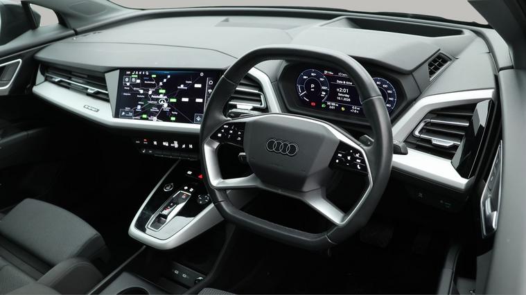 Our Audi Q4 e-tron is finished in Black. Specification includes a range of fantastic features including £750 towards your finance deposit, 19'' Alloy wheels, Adaptive Cruise Control, Digital Cockpit, Heated Seats, Virtual Cockpit, Rear View Camera, Bluetooth, Parking Sensors, Audi Parking System Specification information is supplied by CAPHPI and may vary to the actual car. This data does not form any part of a buying contact. Please check specification prior to purchase in-store. The MOT is valid until November 2026, visit dealer's website for more photos, a 360 tour, service history and a free HPI report.
