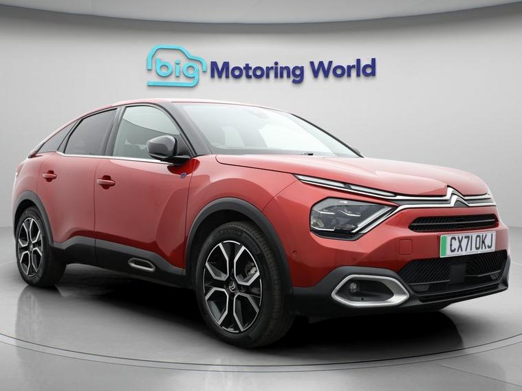 Our Citroen e-C4 is finished in Red. Specification includes a range of fantastic features including £750 towards your finance deposit, Head up Display, 18'' alloy wheels, Heated Seats, Rear View Camera, Heated Steering Wheel, Bluetooth, Blind Spot Assist, Parking Sensors, Ambient Lighting Specification information is supplied by CAPHPI and may vary to the actual car. This data does not form any part of a buying contact. Please check specification prior to purchase in-store. The MOT is valid until September 2026, visit dealer's website for more photos, a 360 tour, service history and a free HPI report.