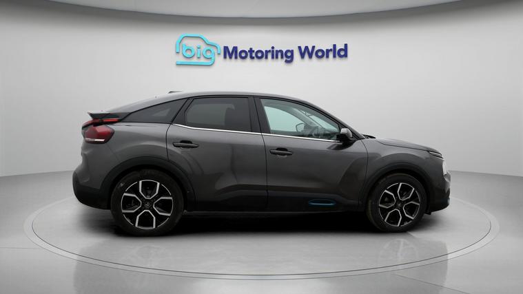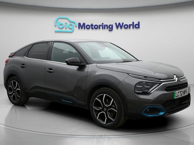 Our Citroen e-C4 is finished in Grey. Specification includes a range of fantastic features including £750 towards your finance deposit, Head up Display, 18'' alloy wheels, Heated Seats, Rear View Camera, Heated Steering Wheel, Bluetooth, Blind Spot Assist, Parking Sensors, Ambient Lighting Specification information is supplied by CAPHPI and may vary to the actual car. This data does not form any part of a buying contact. Please check specification prior to purchase in-store. The MOT is valid until November 2026, visit dealer's website for more photos, a 360 tour, service history and a free HPI report.