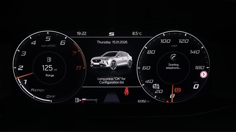 Our CUPRA Formentor comes with optional extras worth £555. Specification includes a range of fantastic features including Adaptive Cruise Control, Digital Cockpit, Lane Assist, Privacy Glass, Gesture Control, Rear View Camera, Internet, Bluetooth, Parking Sensors, Ambient Lighting Specification information is supplied by CAPHPI and may vary to the actual car. This data does not form any part of a buying contact. Please check specification prior to purchase in-store. The MOT is valid until January 2027, visit dealer's website for more photos, a 360 tour, service history and a free HPI report.