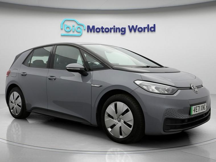 Our Volkswagen ID.3 is finished in Grey. Specification includes a range of fantastic features including £750 towards your finance deposit, Comfort Pack, Adaptive Cruise Control, Lane Assist, Bluetooth, Blind Spot Assist, Parking Sensors, Cruise Control, Keyless Go, Voice Control Specification information is supplied by CAPHPI and may vary to the actual car. This data does not form any part of a buying contact. Please check specification prior to purchase in-store visit dealer's website for more photos, a 360 tour, service history and a free HPI report.