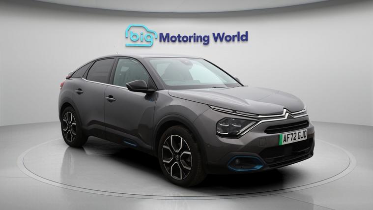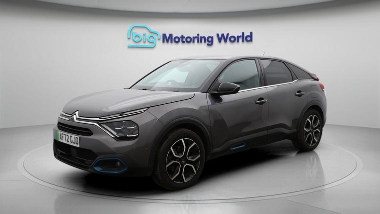 Our Citroen e-C4 is finished in Grey. Specification includes a range of fantastic features including £750 towards your finance deposit, Head up Display, 18'' alloy wheels, Heated Seats, Rear View Camera, Heated Steering Wheel, Bluetooth, Blind Spot Assist, Parking Sensors, Ambient Lighting Specification information is supplied by CAPHPI and may vary to the actual car. This data does not form any part of a buying contact. Please check specification prior to purchase in-store. The MOT is valid until September 2026, visit dealer's website for more photos, a 360 tour, service history and a free HPI report.