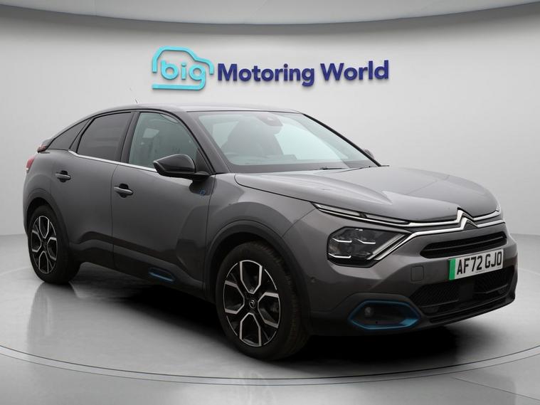 Our Citroen e-C4 is finished in Grey. Specification includes a range of fantastic features including £750 towards your finance deposit, Head up Display, 18'' alloy wheels, Heated Seats, Rear View Camera, Heated Steering Wheel, Bluetooth, Blind Spot Assist, Parking Sensors, Ambient Lighting Specification information is supplied by CAPHPI and may vary to the actual car. This data does not form any part of a buying contact. Please check specification prior to purchase in-store. The MOT is valid until September 2026, visit dealer's website for more photos, a 360 tour, service history and a free HPI report.