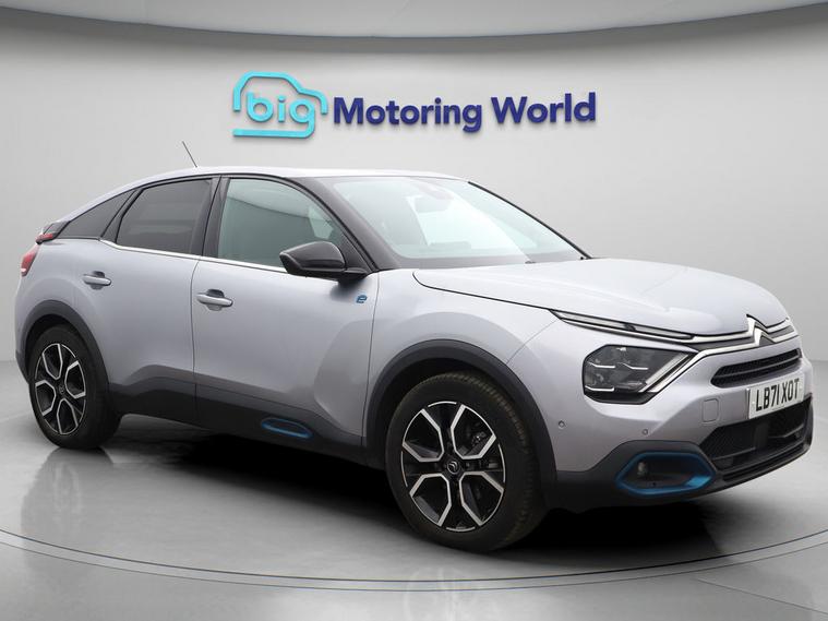 Our Citroen e-C4 is finished in Grey. Specification includes a range of fantastic features including £750 towards your finance deposit, Head up Display, 18'' alloy wheels, Heated Seats, Rear View Camera, Heated Steering Wheel, Bluetooth, Blind Spot Assist, Parking Sensors, Ambient Lighting Specification information is supplied by CAPHPI and may vary to the actual car. This data does not form any part of a buying contact. Please check specification prior to purchase in-store. The MOT is valid until November 2026, visit dealer's website for more photos, a 360 tour, service history and a free HPI report.