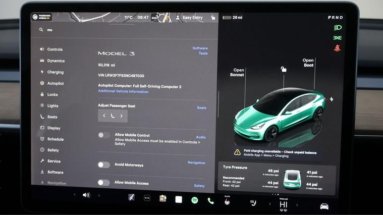 Our Tesla Model 3 is finished in White. Specification includes a range of fantastic features including £750 towards your finance deposit, 18'' alloy wheels, Leather Seats, Adaptive Cruise Control, Satellite Navigation, Heated Seats, Wireless Phone Charging, Rear View Camera, Heated Steering Wheel, Bluetooth Specification information is supplied by CAPHPI and may vary to the actual car. This data does not form any part of a buying contact. Please check specification prior to purchase in-store. The MOT is valid until January 2027, visit dealer's website for more photos, a 360 tour, service history and a free HPI report.