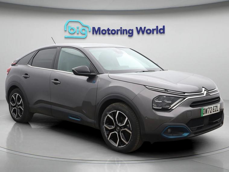 Our Citroen e-C4 is finished in Grey. Specification includes a range of fantastic features including £750 towards your finance deposit, Head up Display, 18'' alloy wheels, Heated Seats, Rear View Camera, Heated Steering Wheel, Bluetooth, Blind Spot Assist, Parking Sensors, Ambient Lighting Specification information is supplied by CAPHPI and may vary to the actual car. This data does not form any part of a buying contact. Please check specification prior to purchase in-store. The MOT is valid until October 2026, visit dealer's website for more photos, a 360 tour, service history and a free HPI report.