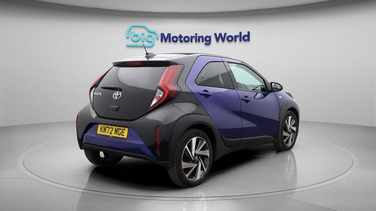 Our Toyota Aygo X is finished in Blue. Specification includes a range of fantastic features including Adaptive Cruise Control, Privacy Glass, Rear View Camera, Bluetooth, Parking Sensors, Cruise Control, Climate Control, DAB Radio , Touch Screen Control, LED daytime running lights Specification information is supplied by CAPHPI and may vary to the actual car. This data does not form any part of a buying contact. Please check specification prior to purchase in-store. The MOT is valid until November 2026, visit dealer's website for more photos, a 360 tour, service history and a free HPI report.