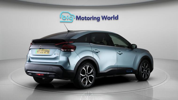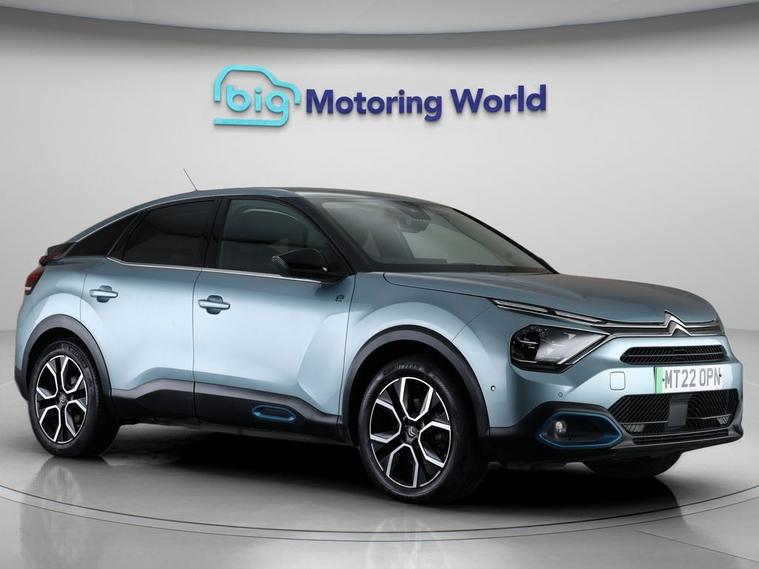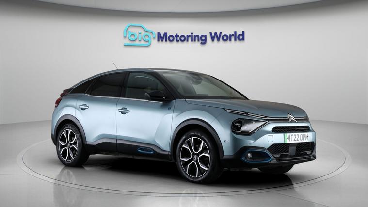 Our Citroen e-C4 is finished in Blue. Specification includes a range of fantastic features including £750 towards your finance deposit, Head up Display, 18'' alloy wheels, Leather Seats, Satellite Navigation, Privacy Glass, Heated Seats, Rear View Camera, Heated Steering Wheel, Bluetooth Specification information is supplied by CAPHPI and may vary to the actual car. This data does not form any part of a buying contact. Please check specification prior to purchase in-store. The MOT is valid until January 2027, visit dealer's website for more photos, a 360 tour, service history and a free HPI report.