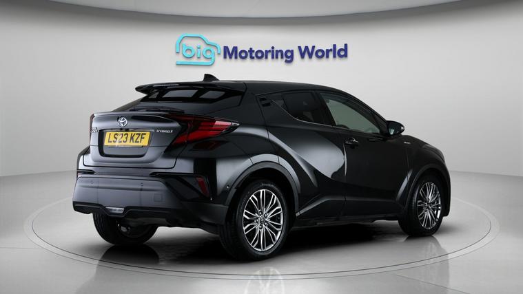 Our Toyota C-HR is finished in Black. Specification includes a range of fantastic features including Adaptive Cruise Control, Privacy Glass, Rear View Camera, Heated Steering Wheel, Bluetooth, Parking Sensors, Adaptive LED Headlights, Ambient Lighting, Wi-Fi Hot Spot Prep, 2 Zone Climate Specification information is supplied by CAPHPI and may vary to the actual car. This data does not form any part of a buying contact. Please check specification prior to purchase in-store. The MOT is valid until January 2027, visit dealer's website for more photos, a 360 tour, service history and a free HPI report.