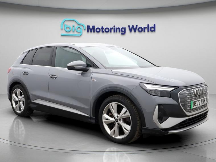 Our Audi Q4 e-tron is finished in Grey. Specification includes a range of fantastic features including Leather Seats, Apple CarPlay, Lane Assist, S Line Body Styling, Android Auto, Satellite Navigation, Privacy Glass, Heated Seats, Bluetooth, Parking Sensors Specification information is supplied by CAPHPI and may vary to the actual car. This data does not form any part of a buying contact. Please check specification prior to purchase in-store. The MOT is valid until December 2026, visit dealer's website for more photos, a 360 tour, service history and a free HPI report.