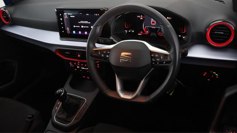 Our SEAT Ibiza is finished in Blue. Specification includes a range of fantastic features including 17'' Alloy Wheels, Apple CarPlay, Lane Assist, Android Auto, Satellite Navigation, Privacy Glass, Bluetooth, Parking Sensors, Ambient Lighting, Flat Bottom Steering Wheel Specification information is supplied by CAPHPI and may vary to the actual car. This data does not form any part of a buying contact. Please check specification prior to purchase in-store. The MOT is valid until July 2026, visit dealer's website for more photos, a 360 tour, service history and a free HPI report.