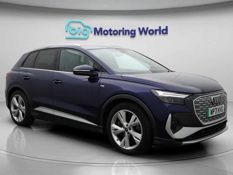 Our Audi Q4 e-tron is finished in Blue. Specification includes a range of fantastic features including Part Leather Seats, Apple CarPlay, Lane Assist, S Line Body Styling, Android Auto, Satellite Navigation, Privacy Glass, Heated Seats, Rear View Camera, Bluetooth Specification information is supplied by CAPHPI and may vary to the actual car. This data does not form any part of a buying contact. Please check specification prior to purchase in-store. The MOT is valid until January 2027, visit dealer's website for more photos, a 360 tour, service history and a free HPI report.