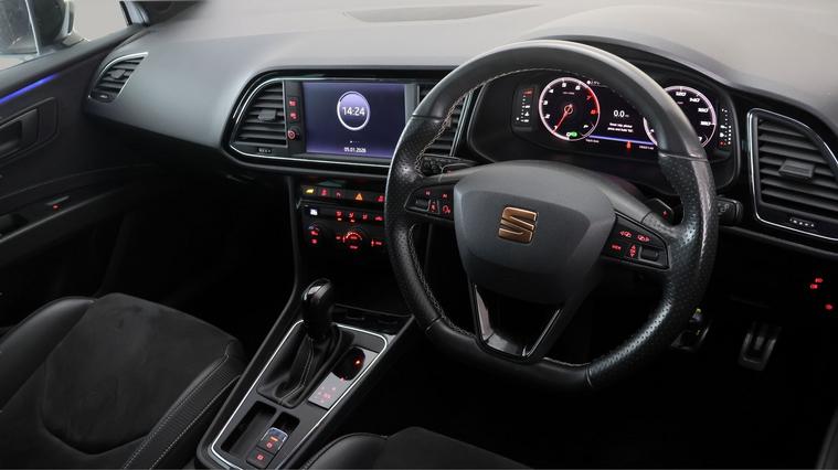Our SEAT Leon is finished in White. Specification includes a range of fantastic features including Dynamic Chassis Control, 19'' Alloy wheels, Part Leather Seats, Satellite Navigation, Privacy Glass, Bluetooth, Parking Sensors, Ambient Lighting, Flat Bottom Steering Wheel, Powered Folding Mirrors Specification information is supplied by CAPHPI and may vary to the actual car. This data does not form any part of a buying contact. Please check specification prior to purchase in-store. The MOT is valid until November 2026, visit dealer's website for more photos, a 360 tour, service history and a free HPI report.