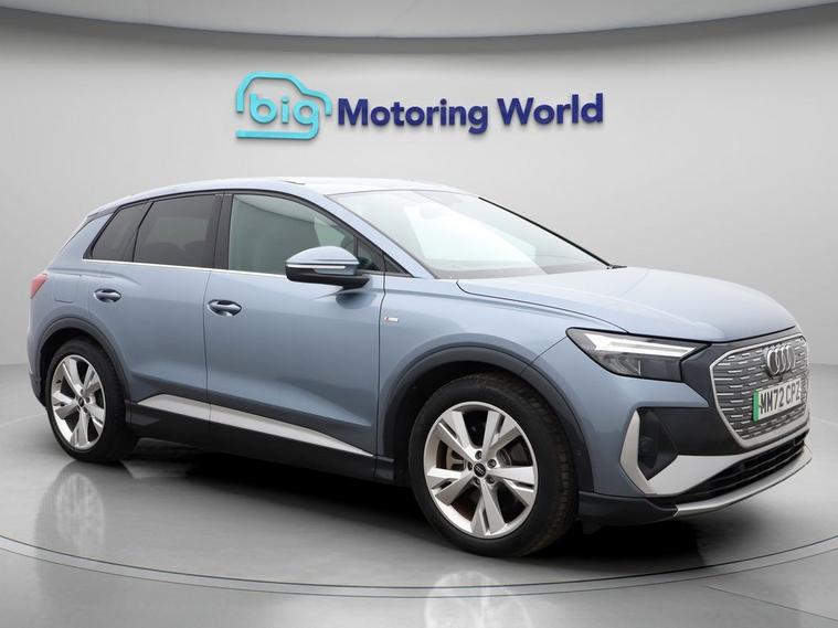 Our Audi Q4 e-tron is finished in Blue. Specification includes a range of fantastic features including Part Leather Seats, Apple CarPlay, Lane Assist, S Line Body Styling, Android Auto, Satellite Navigation, Privacy Glass, Heated Seats, Rear View Camera, Bluetooth Specification information is supplied by CAPHPI and may vary to the actual car. This data does not form any part of a buying contact. Please check specification prior to purchase in-store. The MOT is valid until December 2026, visit dealer's website for more photos, a 360 tour, service history and a free HPI report.