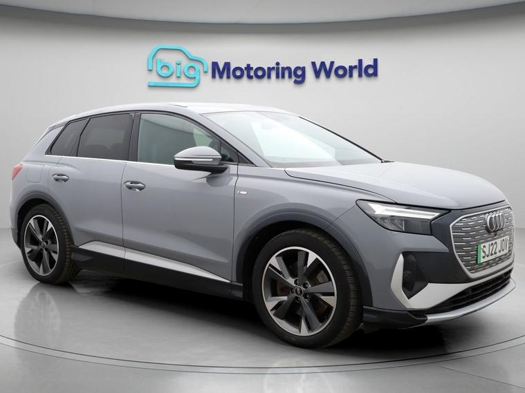Our Audi Q4 e-tron is finished in Grey. Specification includes a range of fantastic features including Digital Cockpit, Privacy Glass, Heated Seats, Virtual Cockpit, Rear View Camera, Bluetooth, Audi Connect, 3 Zone Climate, Keyless Go, DAB Radio Specification information is supplied by CAPHPI and may vary to the actual car. This data does not form any part of a buying contact. Please check specification prior to purchase in-store. The MOT is valid until January 2027, visit dealer's website for more photos, a 360 tour, service history and a free HPI report.