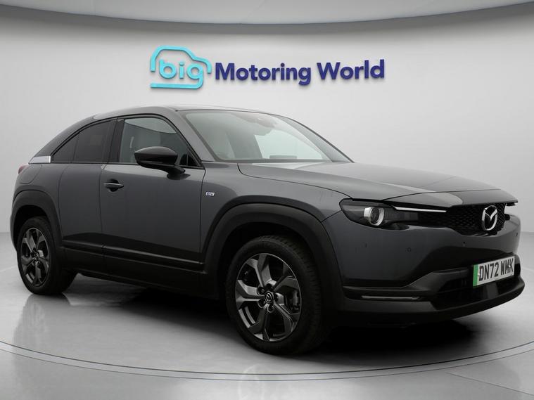 Our Mazda MX-30 is finished in Grey. Specification includes a range of fantastic features including Head up Display, 18'' alloy wheels, Part Leather Seats, Adaptive Cruise Control, Privacy Glass, Heated Seats, Rear View Camera, Bluetooth, Blind Spot Assist, Parking Sensors Specification information is supplied by CAPHPI and may vary to the actual car. This data does not form any part of a buying contact. Please check specification prior to purchase in-store. The MOT is valid until October 2026, visit dealer's website for more photos, a 360 tour, service history and a free HPI report.