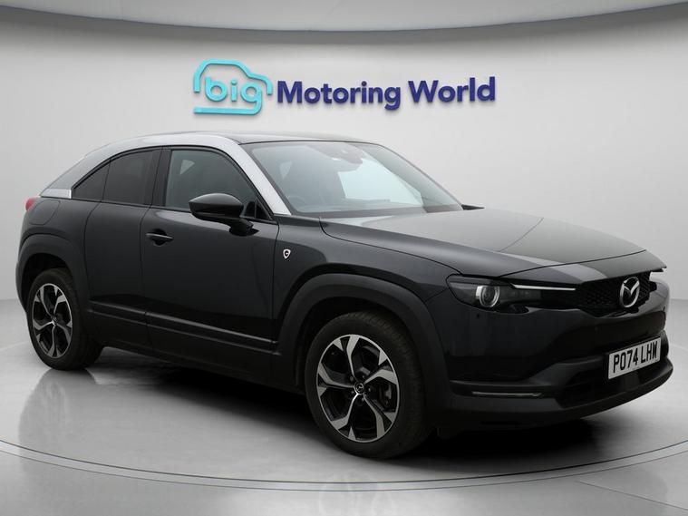 Our Mazda MX-30 is finished in Black. Specification includes a range of fantastic features including Head up Display, 18'' alloy wheels, Part Leather Seats, Adaptive Cruise Control, Privacy Glass, Heated Seats, Heated Steering Wheel, Bluetooth, Blind Spot Assist, Bose Specification information is supplied by CAPHPI and may vary to the actual car. This data does not form any part of a buying contact. Please check specification prior to purchase in-store. The MOT is valid until September 2027, visit dealer's website for more photos, a 360 tour, service history and a free HPI report.