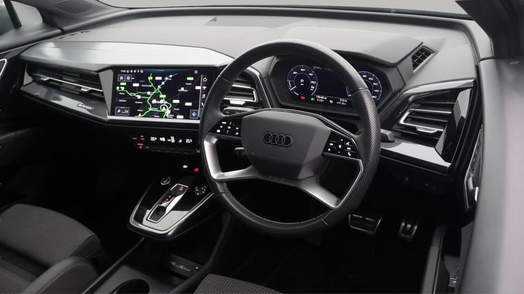 Our Audi Q4 e-tron is finished in Silver. Specification includes a range of fantastic features including Part Leather Seats, Apple CarPlay, Lane Assist, S Line Body Styling, Android Auto, Satellite Navigation, Privacy Glass, Heated Seats, Bluetooth, Parking Sensors Specification information is supplied by CAPHPI and may vary to the actual car. This data does not form any part of a buying contact. Please check specification prior to purchase in-store. The MOT is valid until February 2027, visit dealer's website for more photos, a 360 tour, service history and a free HPI report.