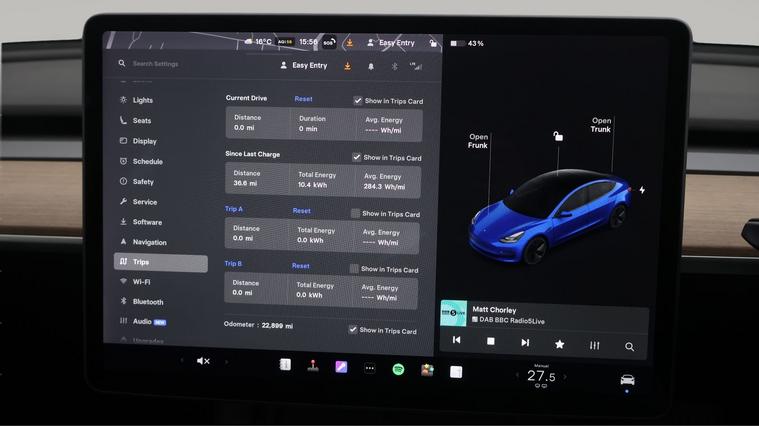 Our Tesla Model 3 is finished in Blue. Specification includes a range of fantastic features including £500 towards your finance deposit, Panoramic Roof, All Wheel Drive, Leather Seats, Adaptive Cruise Control, Satellite Navigation, Heated Seats, Wireless Phone Charging, Rear View Camera, Heated Rear Seats Specification information is supplied by CAPHPI and may vary to the actual car. This data does not form any part of a buying contact. Please check specification prior to purchase in-store. The MOT is valid until November 2026, visit dealer's website for more photos, a 360 tour, service history and a free HPI report.