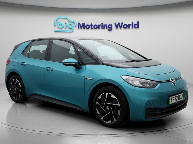 Our Volkswagen ID.3 is finished in Turquoise. Specification includes a range of fantastic features including Apple CarPlay, Adaptive Cruise Control, Lane Assist, Android Auto, Satellite Navigation, Heated Seats, Heated Steering Wheel, Bluetooth, Blind Spot Assist, Parking Sensors Specification information is supplied by CAPHPI and may vary to the actual car. This data does not form any part of a buying contact. Please check specification prior to purchase in-store. The MOT is valid until February 2027, visit dealer's website for more photos, a 360 tour, service history and a free HPI report.